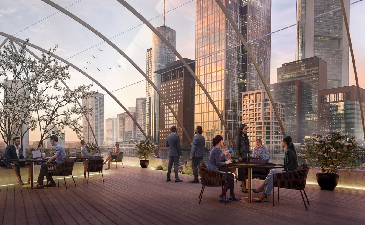Aufstockung mit „Skygarden“ und einmaligem Blick auf die Frankfurter Skyline